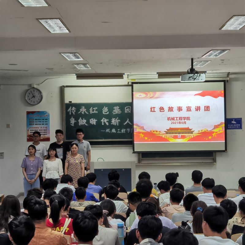五位本科生党员李晨、江晨松、孙新宇、曹睿彦、张梓渝分别讲述了《传承大别山精神,谱写时代新篇章》、《甘愿征战血染衣,不平倭寇誓不休》、《赵醒侬:以血唤民智,为国赴大义》等红色故事,一位位英雄先烈、一件件英雄事迹让大家深切感受到共产党人如磐的初心和如山的信仰,感受到了我们的党在社会主义建设、发展过程中展示的磅礴力量。