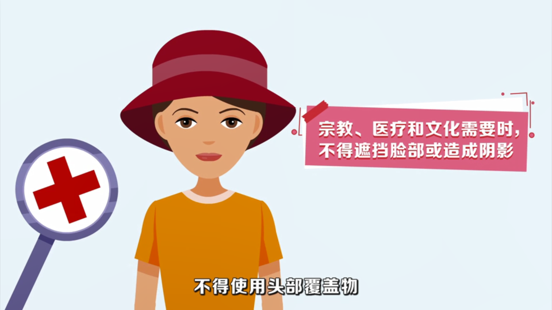 4.佩饰及遮挡物:不得佩戴耳环、项链等饰品,头发不得遮挡眉毛、眼睛和耳朵,不得使用头部覆盖物(宗教、医疗和文化需要时,不得遮挡脸部或造成阴影),不宜化妆或涂抹防晒霜。