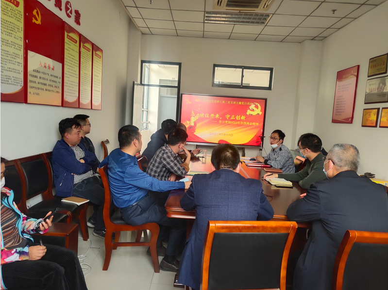 支部书记张华希望全体党员全面贯彻落实两会精神,秉持“命运共同体”理念,坚持休戚与共,荣辱与共,同舟共济,同甘共苦,在工作中充分发挥党员先锋模范作用,奋发有为,大有作为,以实际行动和优异成绩迎接党的二十大胜利召开。
