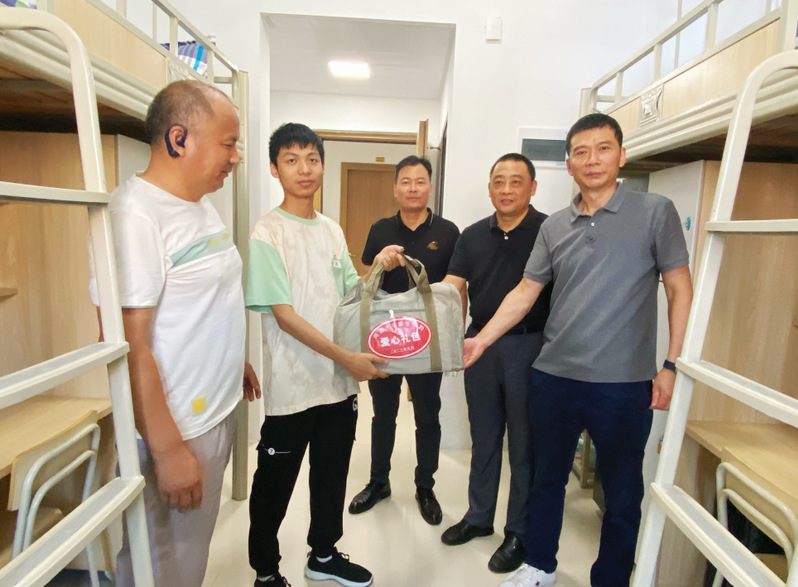 9月10日上午,永利集团官网党委书记张志刚,党委副书记、院长朱昱,党委副书记、副院长孙汉中一行深入学生宿舍看望新生并为家庭经济困难学生代表送上慰问品。