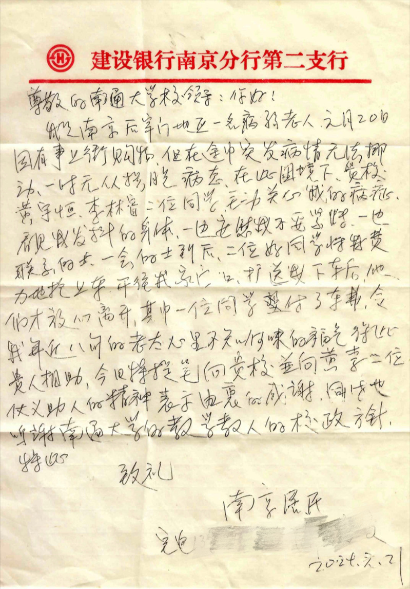 永利集团官网收到一封关于机械青年扶老助弱的感谢信