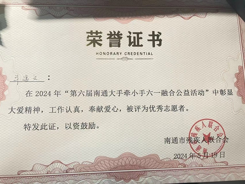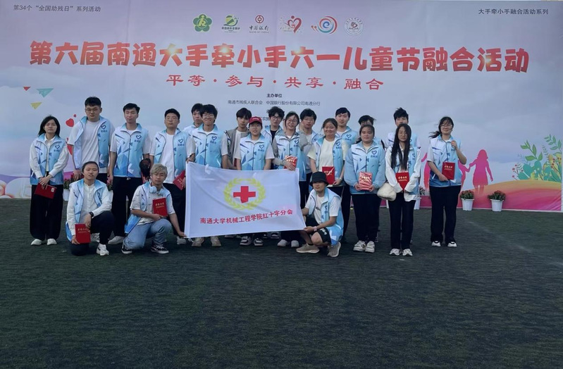 5月19日,为庆祝第34个全国助残日,由南通市残联与中国银行南通分行主办的“第六届南通大手牵小手六一儿童节融合活动”在江苏商贸职业学院开展,永利集团官网红十字分会学生志愿者受邀参加。