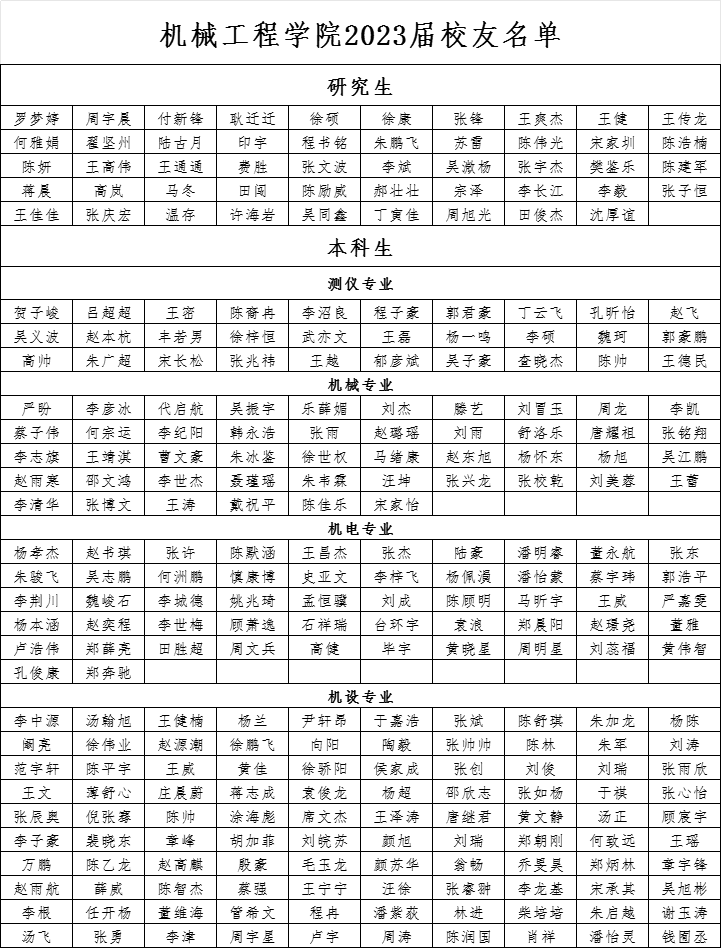 永利集团官网2023届校友名单