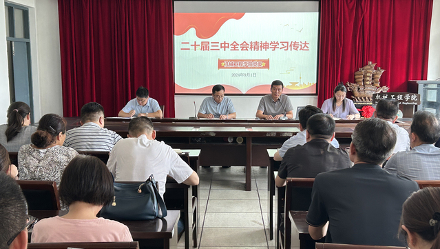 学院党委书记张志刚主持会议,回顾了历届党的三中全会在促进国家经济发展和深化体制改革中的重要意义,介绍了党的二十届三中全会概况以及会议提出的新概念新观点新论断。张志刚指出,要深刻理解总结党的二十届三中全会召开的重大意义,认真学习好《决定》的战略部署,更加自觉地用习近平新时代中国特色社会主义思想武装头脑、指导实践、推动工作,不断深化学院内部治理改革,不断激发教职工发展的动力活力,推动实现学校和学院的高质量发展。