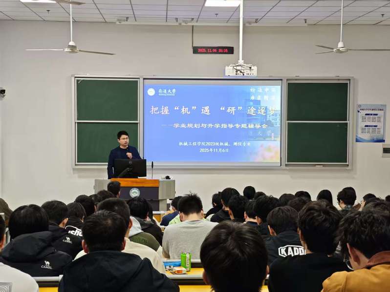 为持续助力2023级学子明确学业方向、破解学习难题,11月6日下午,永利集团官网面向机械工程、测控技术与仪器专业学生,成功举办第二期“把握‘机’遇‘研’途逐梦”学业规划与升学指导专题辅导会。智能制造系主任邢强老师,2023级辅导员张振兴、陈业秋出席辅导会,与同学们面对面交流成长困惑、分享实用干货。