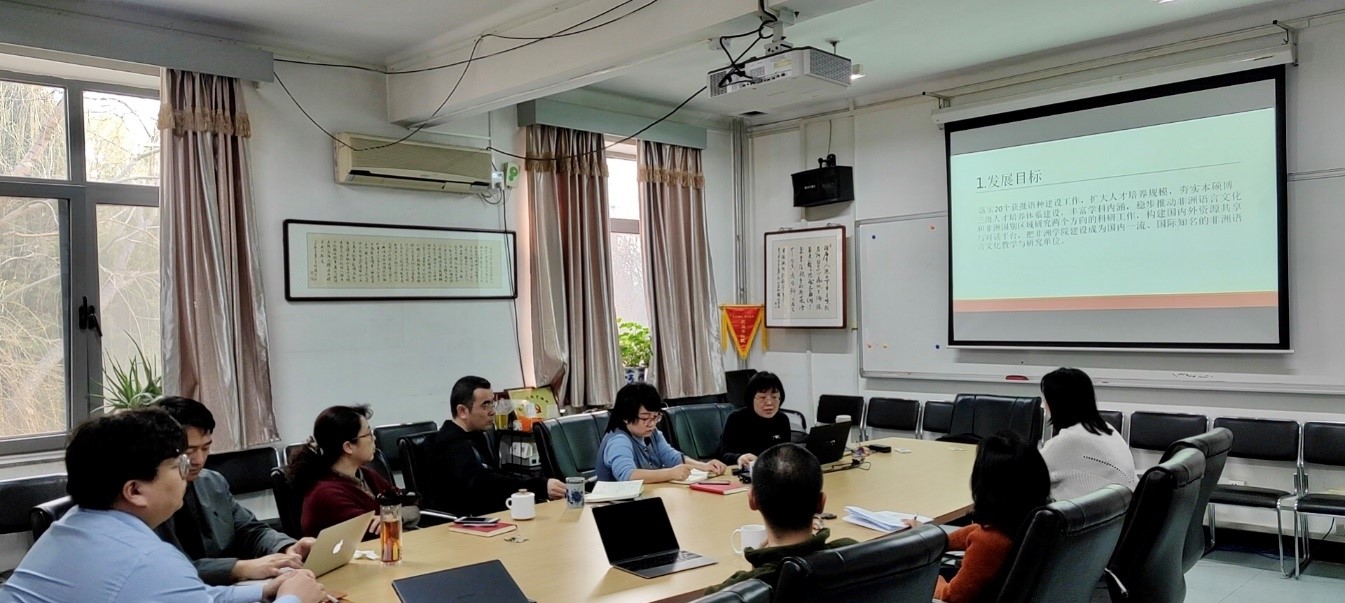 非洲学院院长李洪峰报告非洲学院十四五规划的内容,主题是“务实发展,攻坚克难”。非洲学院以建设国内一流、国际知名的非洲语言文化教学与研究单位为主要目标。尽管面临艰巨挑战,十四五期间学院将继续派出非洲语言方向的师资研究生,创办非洲语言文化研究的学刊,并定期举办非洲语言与文化研究国际研讨会。学院将加强学科建设和师资队伍建设,争创一流学科,为“一带一路倡议”贡献力量。