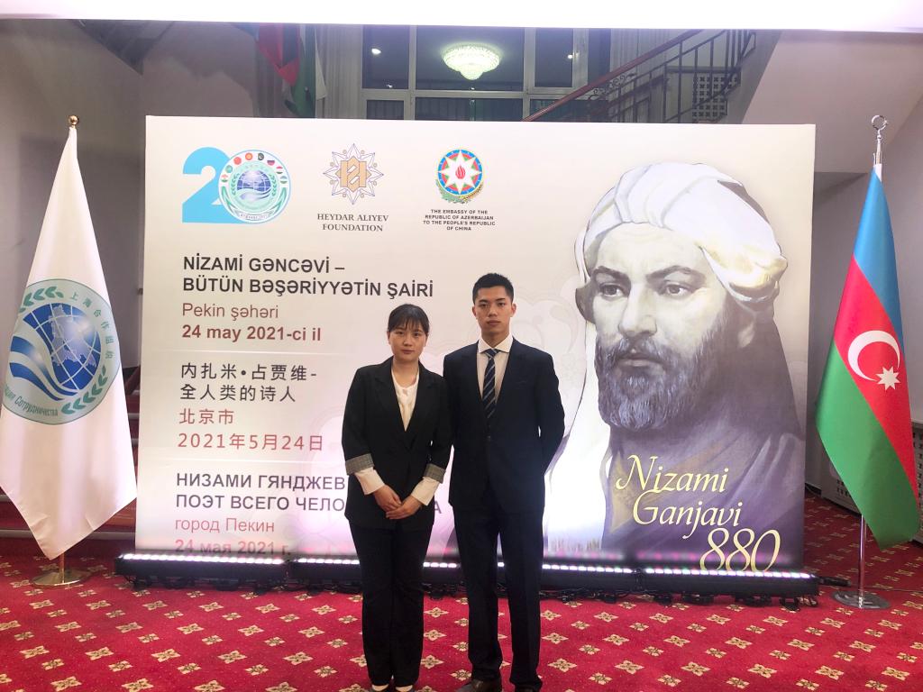 2021年5月24日晚,经阿塞拜疆驻华大使馆的邀请,beat365英国官网网站阿塞拜疆语专业本科生王思源和唐雨萱参与了“内扎米·占贾维—全人类的诗人”主题活动。该活动在北京上海合作组织总部举办,旨在庆祝伟大阿塞拜疆诗人,思想家内扎米·占贾维诞辰880周年。
