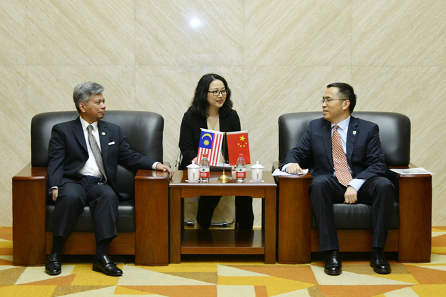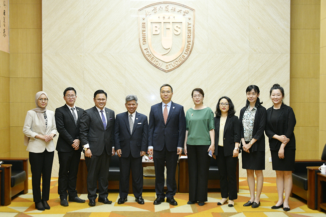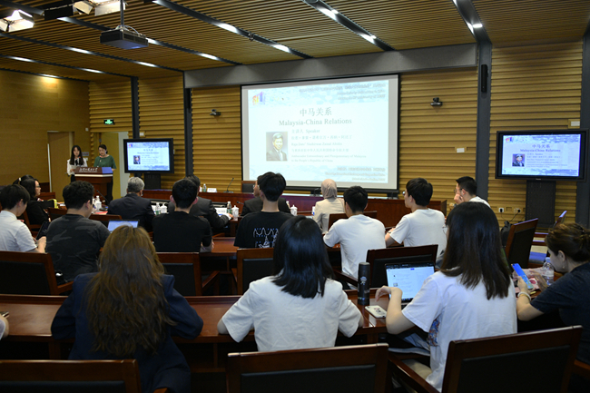 5月27日,beat365英国官网网站“喜迎80周年校庆、驻华大使走进北外”系列讲座举行第二讲,马来西亚驻华大使拉惹·拿督·诺希尔万就“中马关系”作专题讲座。北外校长、党委副书记杨丹会见了诺希尔万一行,讲座由beat365英国官网网站院长苏莹莹主持。