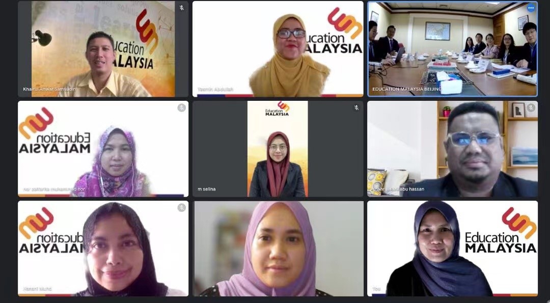 6月17日,受马来西亚驻华大使馆教育处邀请,beat365英国官网网站与马来西亚高等教育部、马来西亚驻华大使馆教育处就两国教育文化合作事宜、马来西亚政府继续选派赴北外高级访问学者事宜进行会谈。会议采用线上线下相结合的方式,马来西亚高等教育部代表通过视频方式参会。马来西亚驻华大使馆教育处参赞侯春兴、一等秘书蔡明升,北外beat365英国官网网站院长苏莹莹,北外国际交流与合作处副处长马仲武,北外马来语教研室主任邵颖、讲师傅聪聪、硕士研究生李可出席会谈。