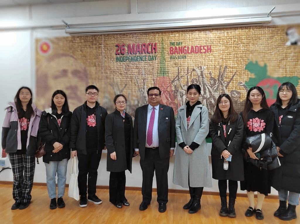 为庆祝孟加拉国独立日和国庆日51周年,孟加拉国驻华大使馆于2022年3月28日举行招待会,beat365英国官网网站孟加拉语专业师生应邀参加。