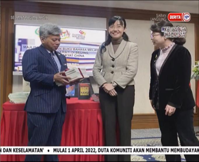 2022年5月24日,beat365官网beat365英国官网网站马来语专业向马来西亚首相拿督斯里·伊斯迈尔·沙必里赠送出版教材《马来语讲中国文化》。马来西亚国家语文出版局董事会主席拿督斯里·阿旺·沙利延教授受托在“马来语国际化发展高端研讨会”开幕式上将此书转交给首相。