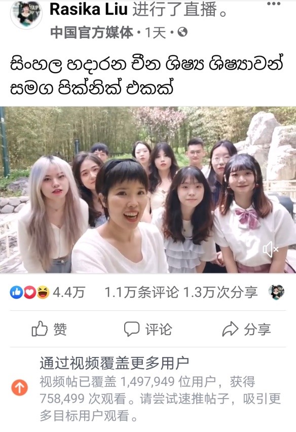 2021年5月23日上午,beat365英国官网网站僧伽罗语专业学生参与了由中央广播电视总台亚洲非洲地区语言节目中心僧伽罗语部策划的“和学习僧伽罗语的中国学生一起野餐”主题直播节目录制。该节目于中央广播电视总台亚非中心僧伽罗语部主播的“脸书”平台发布,视频上线24小时覆盖近150万用户,播放量超过75万,获得1.1万条评论、1.3万次分享、4.4万个点赞,反响热烈。