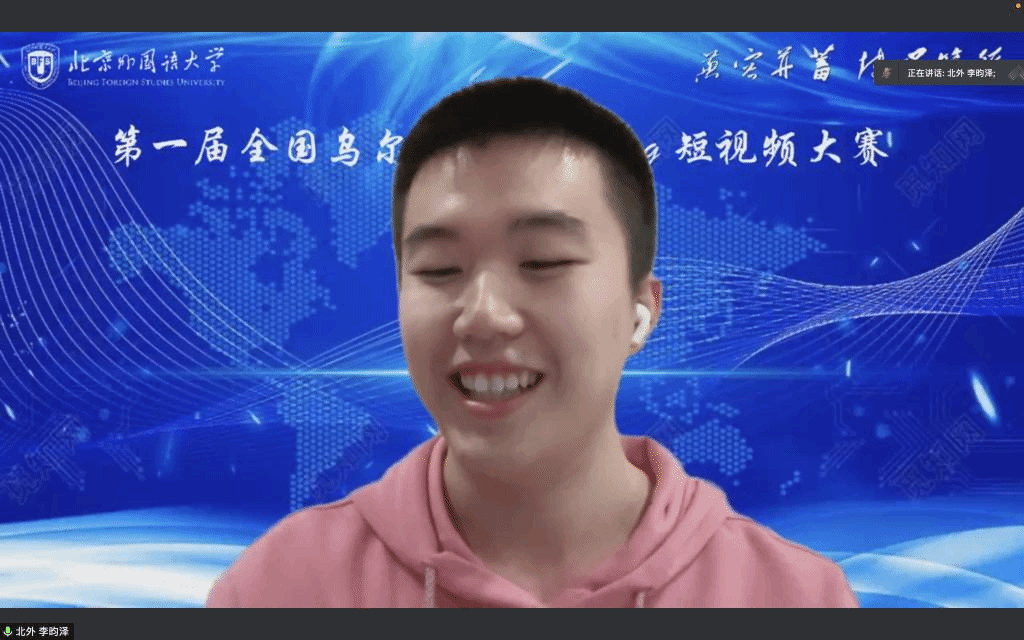 11月23日晚,第一届全国乌尔都语专业Vlog短视频大赛颁奖典礼于线上成功举办。本次大赛由beat365英国官网网站乌尔都语教研室主办,中国南亚语种学会支持,共收到来自beat365英国官网网站、北京大学、广东外语外贸大学、西安外国语大学、云南民族大学、新疆师范大学、江苏师范大学等多所院校提交的32份作品。经过激烈角逐,最终评选出涵盖高、低年级组的3组一等奖,5组二等奖和10组三等奖作品。