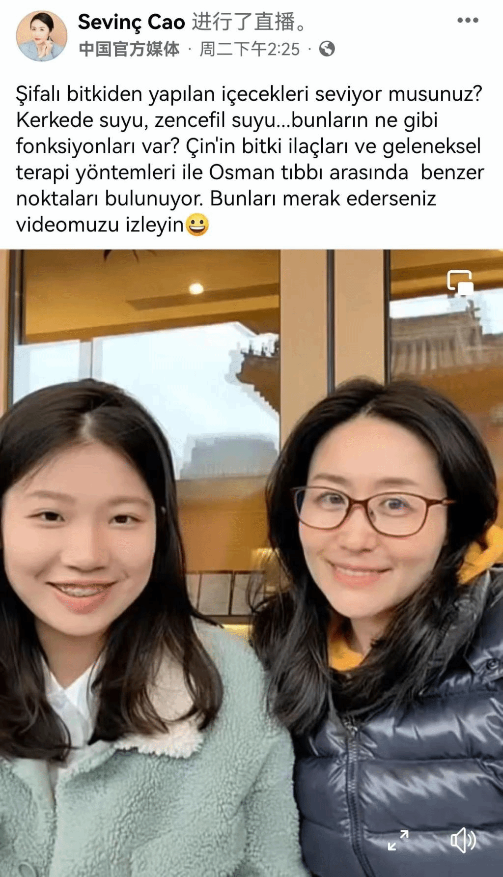2023年4月4日,beat365英国官网网站20级土耳其语专业学生李佳佳与中央广播电视总台土耳其语部记者曹莹一同进行了题为《中华优秀传统文化中医药知识启蒙》直播活动。此次“脸书”直播反响极佳,获得海外网友广泛点赞、关注与好评,覆盖量近27万,互动量达3万。