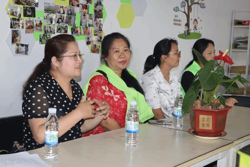 走进瑞丽市妇女儿童发展中心,映入眼帘的便是挂满在墙上的各种感谢信、奖状和妇女儿童的照片。发展中心的一位负责人为我们详细介绍了机构的发展历史以及“缅甸跨境婚姻家庭社会融合项目——高里村工作案例”。瑞丽市妇女儿童发展中心成立于2000年,2004年注册成民办非企业机构,是德宏州成立最早的一家公益机构。中心在女性发展、儿童保护、艾滋病预防、关怀、减贫领域开展工作。发展至今分别在缅甸、芒市成立办公室,多年来中心从社会工作及人文关怀角度出发,在政策倡导、人才培育孵化、生计发展、社会创新等方面开展活动,致力于提高妇女儿童健康水平和生活质量。在“缅甸跨境婚姻家庭社会融合项目——高里村工作案例”中,瑞丽市妇女儿童发展中心以社工驻村为跨境婚姻群体展开综合服务、从多维度对跨境婚姻家庭开展需求评估。也在确保民族文化传承、建立儿童友好社区、促进多元生计、加强妇女组织的培育等多方面为跨境群体提供陪伴式服务和指导。瑞丽市妇女儿童发展中心最大化发挥自身影响力,在加强普法宣传、保护妇女权益、建立乡村学堂等方面也做了很多努力,不仅促进了女性发展,更促进了村庄振兴。