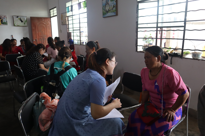 在听完瑞丽市妇女儿童发展中心的介绍后,实践团成员就来到高里村,与当地跨境婚姻妇女开展座谈会和调查问卷访谈。通过调查问卷访谈,实践团成员对跨境婚姻群体的生活、经济、子女、人际交往、文化认同状况和所改善以上状况所面临的困难都有了更深入的了解。也对中缅民心相通的现状和挑战等问题都有了更深层次的理解。结合实地调研,实践团成员都认为瑞丽市妇女儿童发展中心全体工作人员、志愿者所做出的努力是非常伟大的,令人动容。他们望让妇女儿享有健康的生活,使命是:和脆弱妇女儿童一起创造美好未来,实践团成员们也希望通过此次调研贡献一份自己的力量。