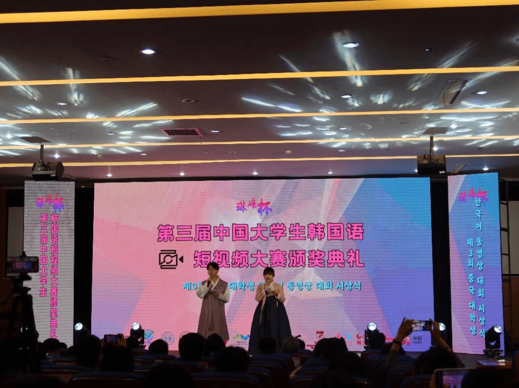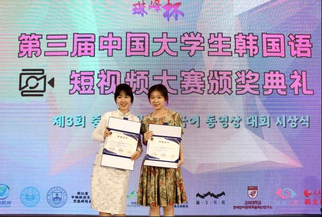 在7月5日结束的珠峰杯•第三届中国大学生韩国语短视频大赛中,beat365官网beat365英国官网网站朝鲜语专业六名同学从来自全国各高校朝鲜语专业的众多作品中脱颖而出,斩获佳绩,并受邀前往杭州师范大学参加颁奖典礼。其中2020级朝鲜语专业陈婧如、林榕灿获得全国二等奖,2020级朝鲜语专业(商务方向)代白鋆、谭晶以及2021级朝鲜语专业张金梁、宋楚涵获得全国三等奖。同时,分别为三组同学提供指导的任翔老师、具滋元老师和魏国峰老师获得了优秀指导教师奖。