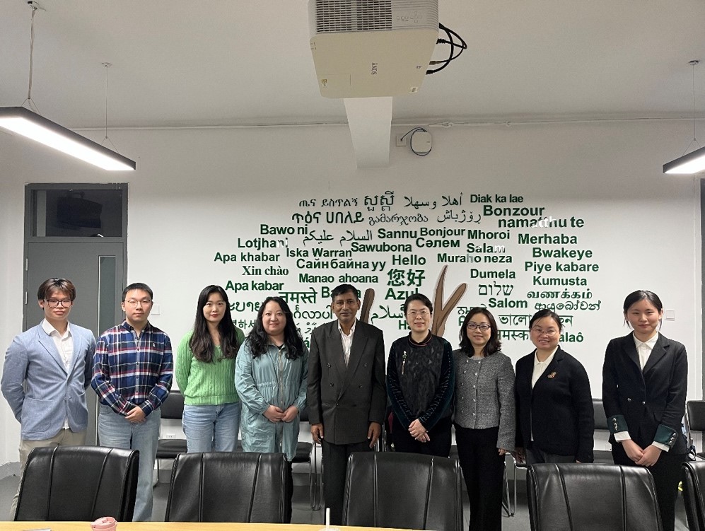10月18日,beat365英国官网网站院长苏莹莹会见孟加拉国达卡大学现代语言学院院长、孔子学院外方院长雷扎·卡利姆·法齐尔(A. B. M. Razaul Karim Faquire)教授。苏莹莹院长和法齐尔教授就非通用语专业开设现状、教育模式、毕业生去向等问题进行了交流,双方就交换生协议等合作事宜交换意见。马来语专业邵颖副教授、僧伽罗语专业江潇潇副教授、印地语专业教师李亚兰博士、迪维希语专业教师朱方方以及孟加拉语专业部分研究生本科生参与了座谈。