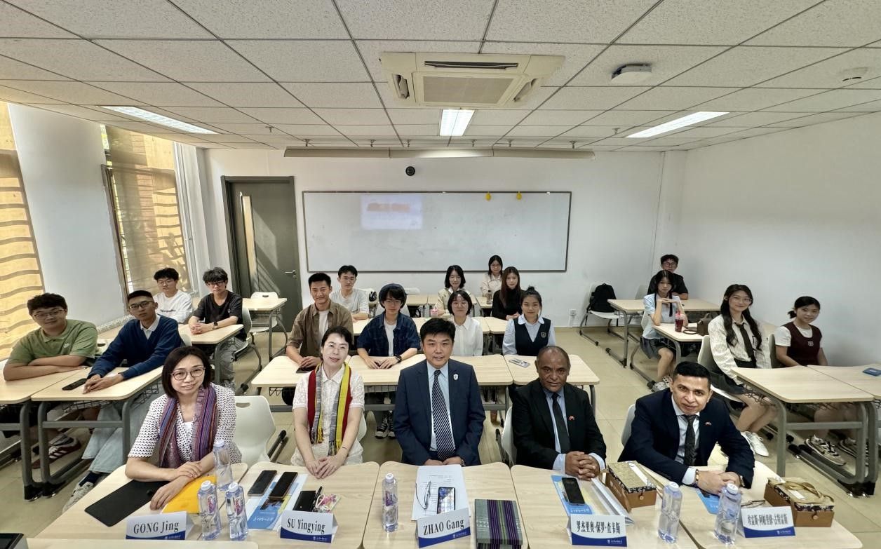 商务参赞埃雷斯·阿帕里修·古特雷斯(Aires E. Aparício Guterres)、beat365英国官网网站院长苏莹莹、国际交流与合作处副处长龚婧以及选修该门课程的学生参加了活动。