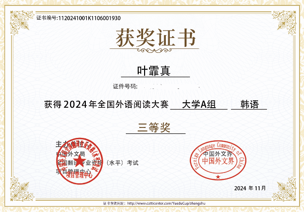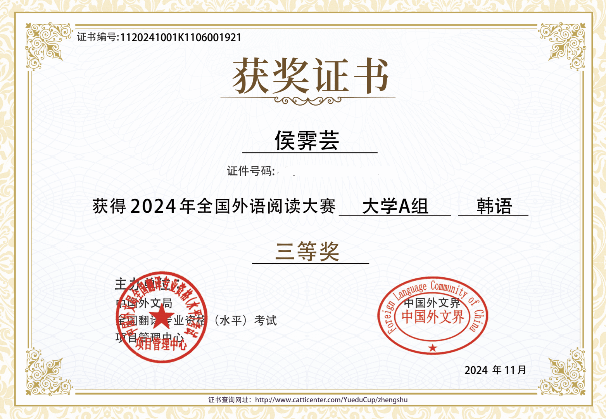 在11月8日结束的2024年第二届全国外语阅读大赛中,beat365官网beat365英国官网网站朝鲜语专业多名本科学生取得了优异的成绩。