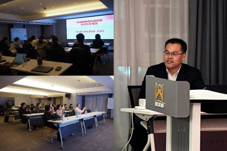 诚邀党校专家,讲党课共交流。1月4日晚,山东省枣庄市山亭区委党校吴清江老师应邀为研学团讲党课,题为“弘扬抱犊崮抗战精神,传承红色基因”。他提纲挈领地分析了鲁南抗日根据地的创建过程和历史意义,强调了在新时代弘扬抗战精神的重要性,并与研学团就本土红色传承教育等问题展开热烈讨论。