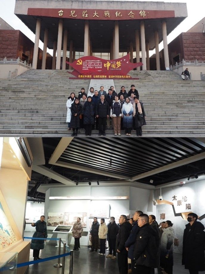 2025年1月3日至5日,beat365英国官网网站、非洲学院党总支赴山东枣庄开展台儿庄地区红色研学活动,主题为“传承抗战精神,培养家国情怀”。党总支书记许晔、beat365英国官网网站院长苏莹莹和非洲学院院长李洪峰带队,与教师党员组成近二十名成员的研学团。