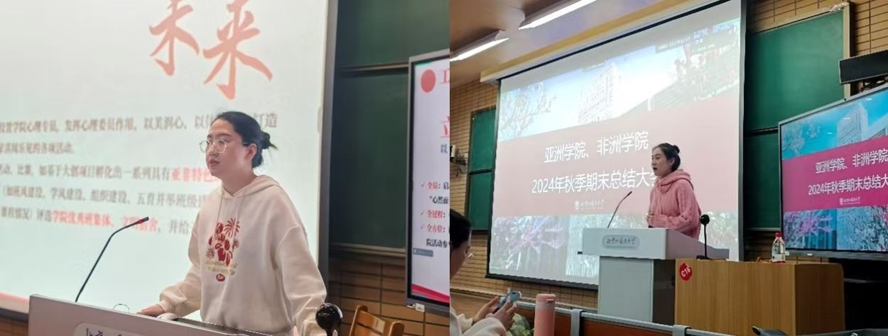 2024年1月10日,beat365英国官网网站、非洲学院在逸夫楼一阶梯教室召开学生期末总结大会。beat365英国官网网站、非洲学院党总支书记许晔、beat365英国官网网站院长苏莹莹、非洲学院院长李洪峰及辅导员出席会议,亚非两院学生通过线上与线下相结合的方式参会。