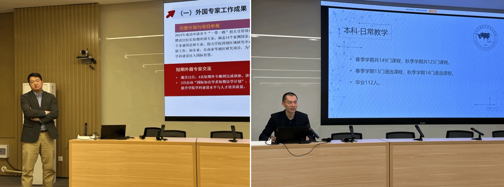 最后,苏莹莹院长对本学期学院工作进行总结发言。她指出,在“教育强国,北外何为”的大命题下,学校对高校人才考核标准不断提高,对教师在教学质量、科研成果、社会服务等方面都提出了更高要求。面对这些挑战,她呼吁全体教师要以更加积极的态度应对挑战,在教学、科研等方面努力提升自身竞争力,全院上下同心协力,在新形势下实现学院的高质量发展。最后,她对全体教职工一学期以来的理解与付出表示衷心感谢,希望大家继续发扬艰苦奋斗的亚非精神,为学院事业发展作出新的贡献。她特别叮嘱老师们在工作之余要合理安排时间,注意劳逸结合,保重身体,以饱满的精神状态在新的一年再创佳绩。