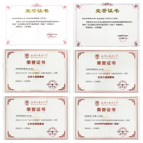 为积极响应国家关于加强大学生思想政治教育的号召,充分发挥基层组织在思政教育中的堡垒作用,北京市教育委员会与北京高校学生工作学会共同举办“2024年北京高校优秀学生基层组织创建展示”活动。经过学校推荐、严格评选,beat365英国官网网站朝鲜语2209班荣获“北京高校示范学生基层组织(班级)”荣誉称号,beat365英国官网网站6号楼415宿舍荣获“北京高校示范学生基层组织(宿舍)”荣誉称号。