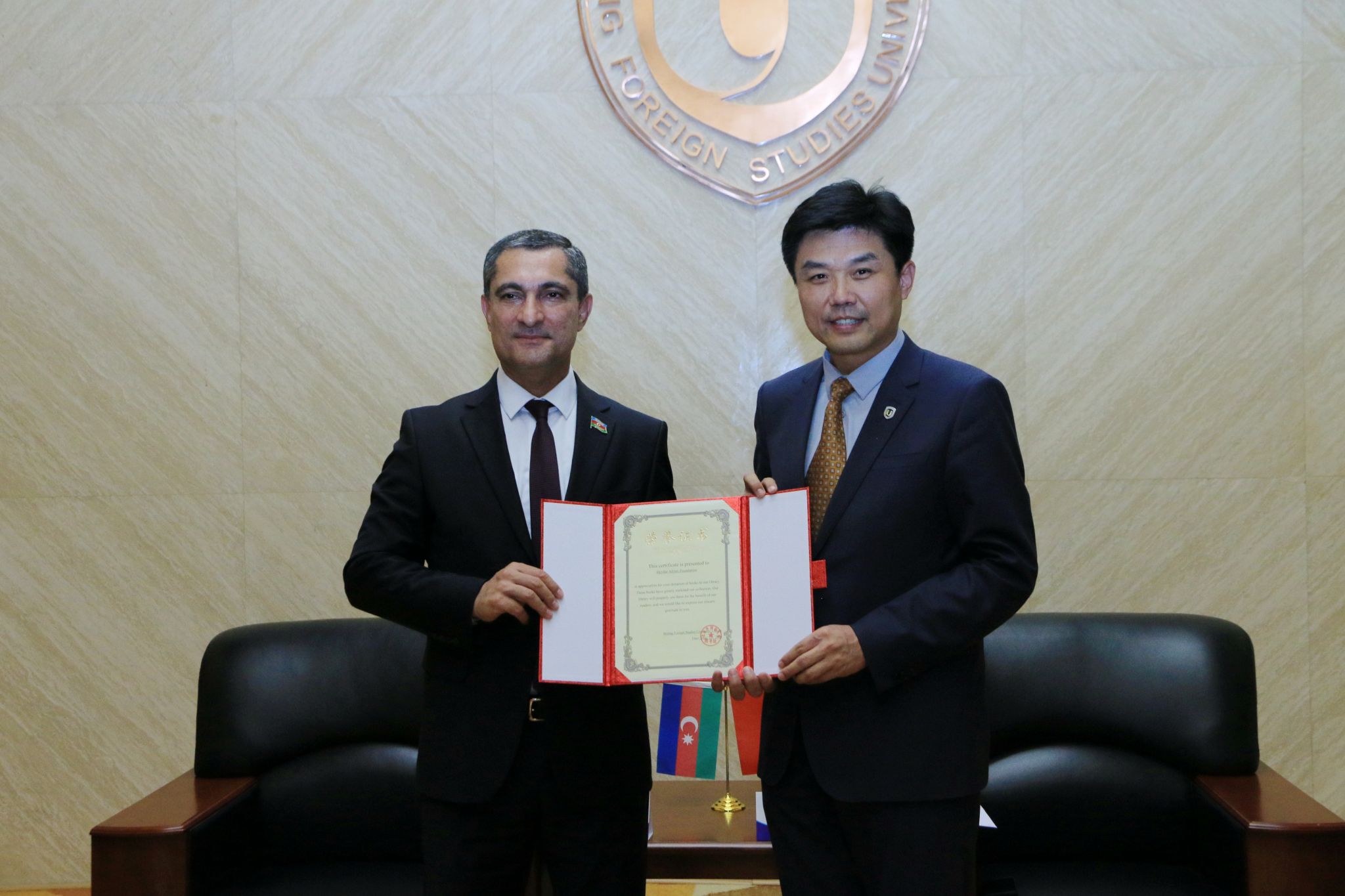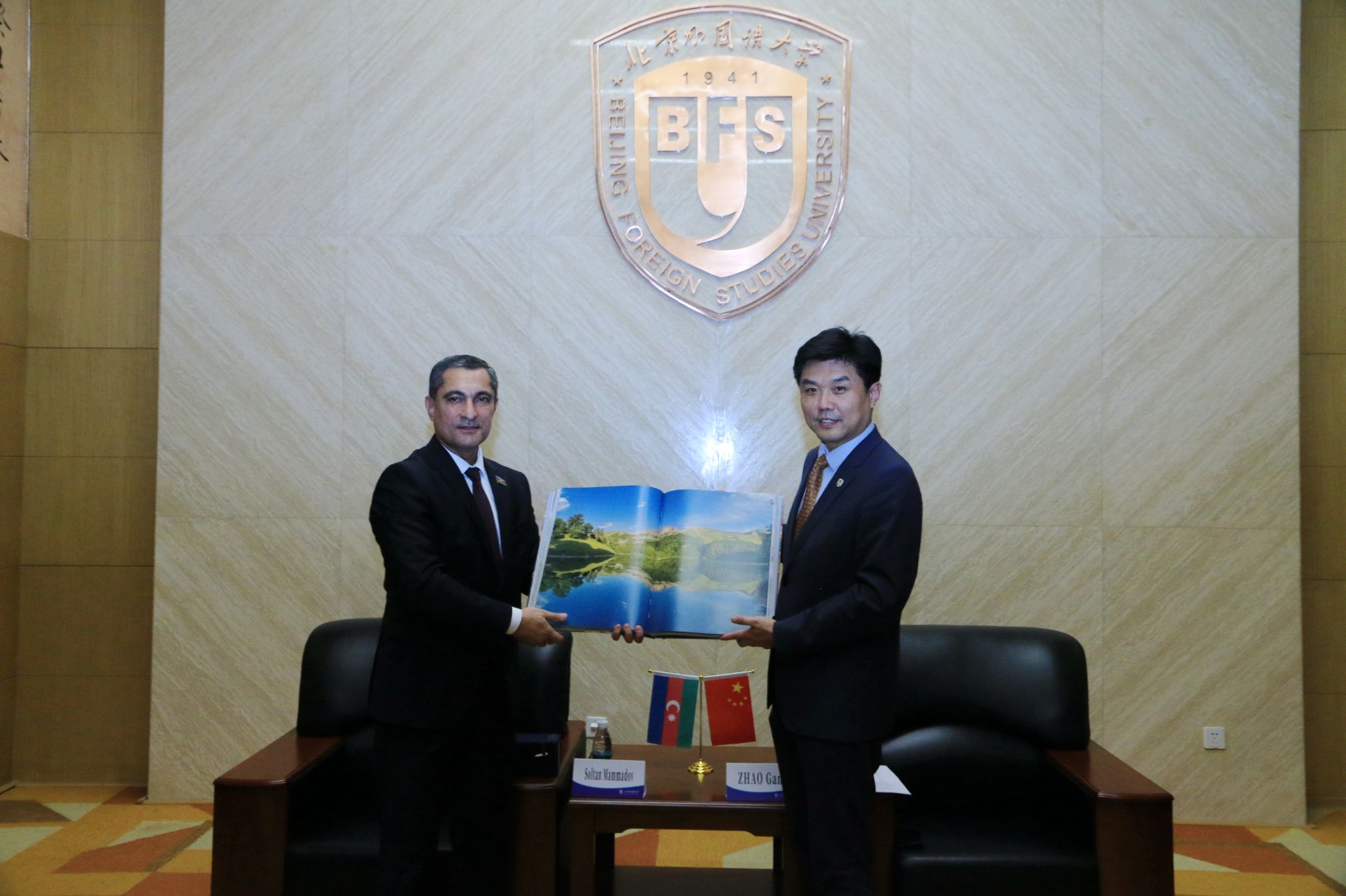 5月30日,盖达尔·阿利耶夫基金会国际联络部主任、阿塞拜疆国民会议议员及阿中关系工作组组长苏丹·玛玛多夫、阿塞拜疆驻华大使布尼亚德·胡赛诺夫访问北外,并向北外图书馆赠送近300册阿塞拜疆语书籍。北外党委常委、副校长赵刚会见玛玛多夫先生一行。
