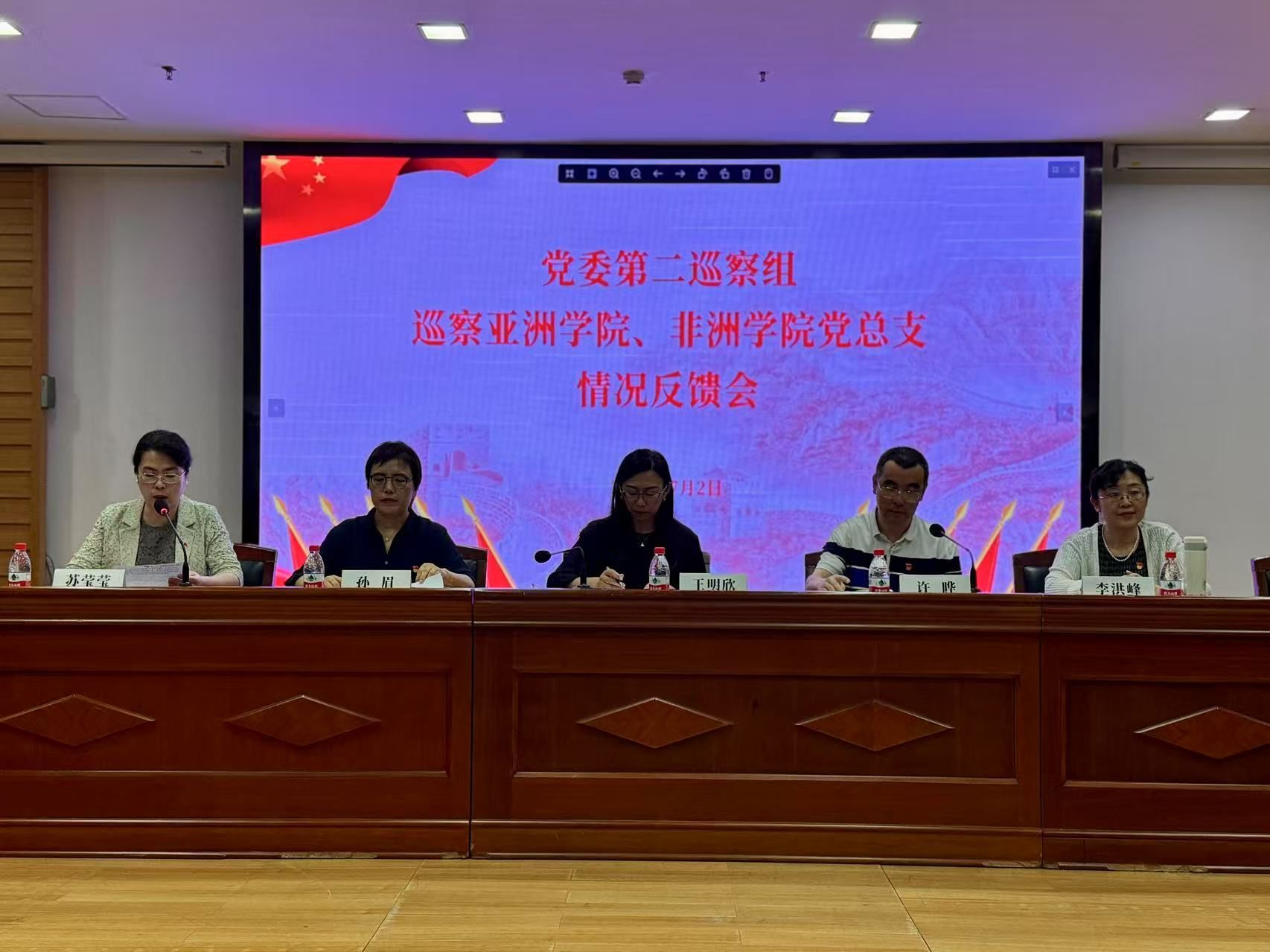根据学校党委统一部署,2025年4月7日至4月30日,党委第二巡察组对beat365英国官网网站、非洲学院党总支开展了常规巡察。巡察组组长孙眉代表巡察组通报了巡察情况。她指出,beat365英国官网网站、非洲学院党总支能够贯彻落实学校党委工作部署,注重“语言+”复合型人才培养,在党建与业务融合、师资队伍建设、“101工程”语种建设等方面取得积极进展。但仍存在理论学习针对性不强、人才培养机制不够健全、科研组织化程度不高、意识形态风险防范不够充分、制度执行力不强、整改机制不够完善等问题,亟需高度重视并抓紧整改。针对巡察发现的问题,巡察组提出四方面整改建议:一是坚持以党的政治建设为统领,进一步提升政治判断力、领悟力和执行力;二是深化教育教学改革,推动“语言+区域国别+专业”融合育人体系落地见效;三是加强队伍建设,优化人才结构,提升科研组织能力;四是压实主体责任,完善整改闭环机制,以实效回应师生关切。