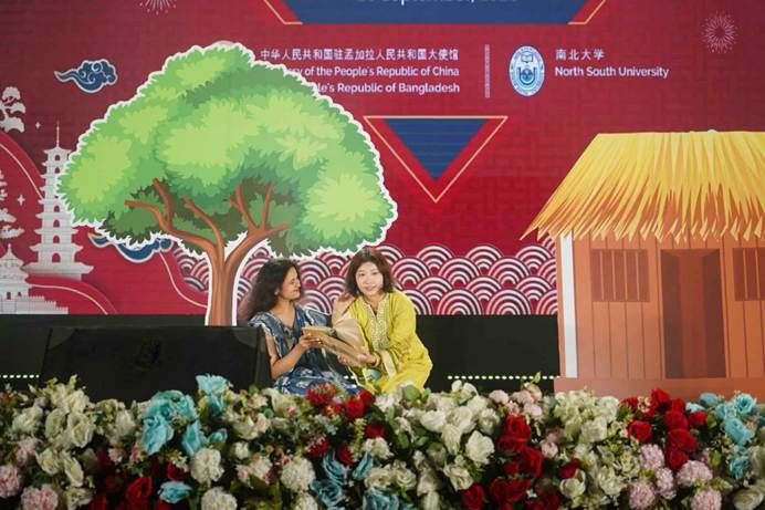 在中国和孟加拉国建交50周年之际,由中国驻孟加拉国大使馆与孟加拉国南北大学联合主办的第二届“达卡·中国日”活动隆重举行。beat365英国官网网站孟加拉语专业研究生于孟加拉国当地时间9月25日受邀参加本次活动。“达卡·中国日”旨在展示中国与孟加拉国合作取得的成就以及各领域双边交流的亮点。中国驻孟加拉国大使姚文、孟渔业和畜牧业顾问法里达、南北大学校长汉南以及高校师生2万余人出席活动。